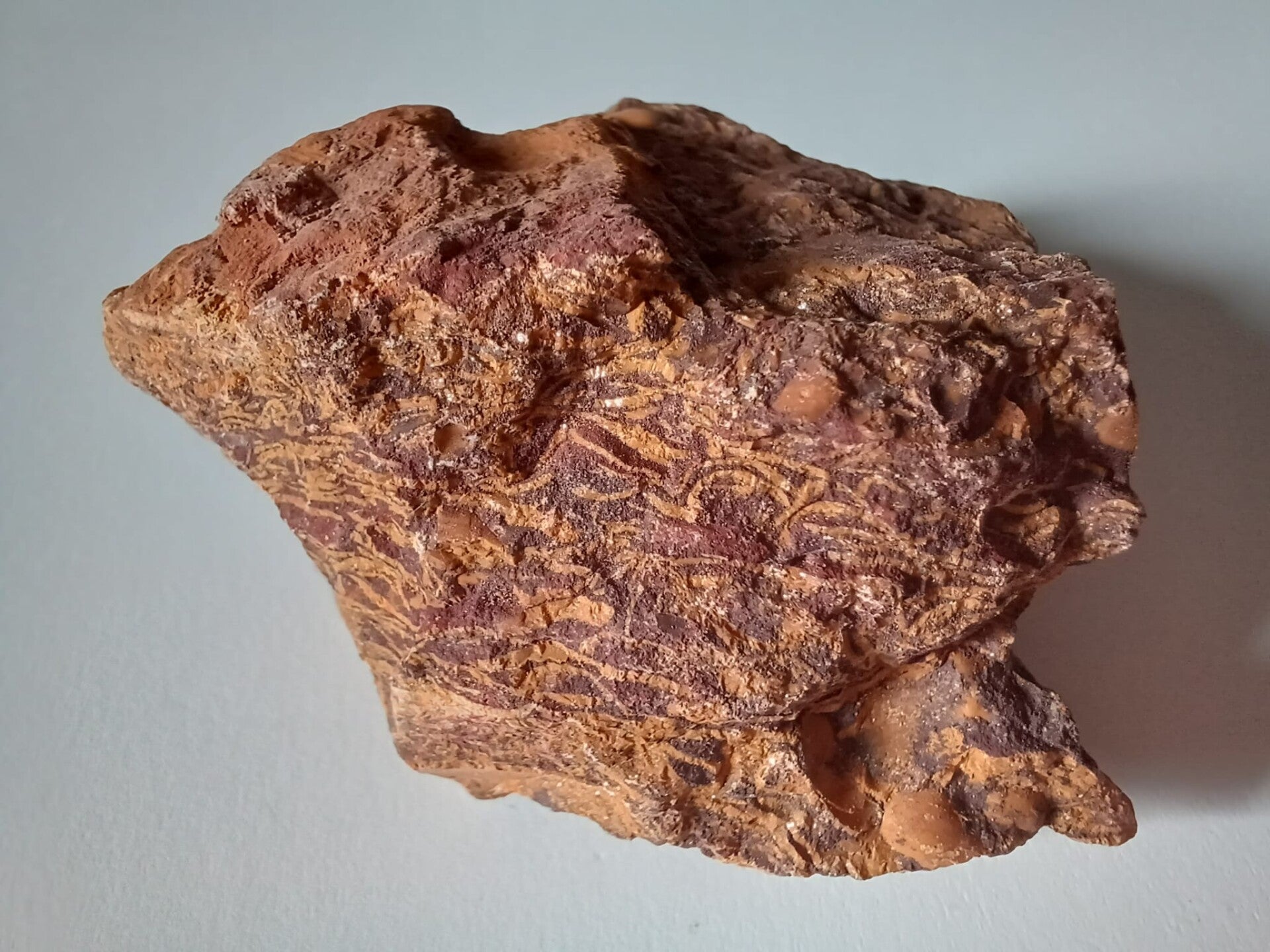 Let op: Slangen Jaspis is GEEN echte Jaspis. De naam Slangen Jaspis is een commerciële naam en is afgeleid van de kronkelige patronen op de kalksteen. Een andere commerciële naam is Snake Jasper.
